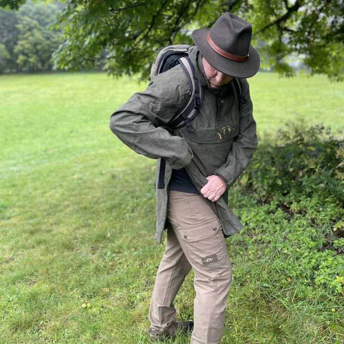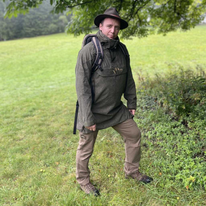 Delší lovecký plášť s nastavitelnou kapucí, ve kterém vám nebude vadit ani vítr ani déšť. Velká klokaní kapsa s pásem na patrony a dvě velké boční kapsy, budou zcela jistě dostačující. Nezapomněli jsme ani na kapsy na obou ramenou pro GPS. Dva dlouhé postranní zipy vám usnadní navléknutí a poslouží i jako větrání. Aby vám plášť dokonale padnul, využijete možnost stažení v pase. Laurent je vodě i větru odolný a zároveň prodyšný. V zimním období se dá využít i jako vrchní plášť proti větru a sněhu.