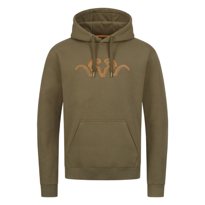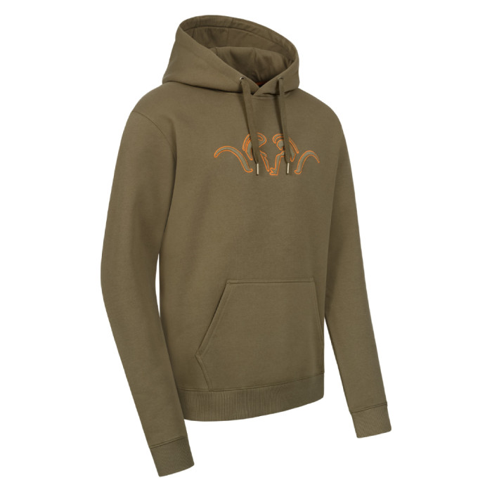 Pánská mikina Blaser přes hlavu s kapucí ze směsi česané bavlny a polyesteru. Vnější strana je hladká, vnitřní počesaná. A právě to dělá mikinu opravdu příjemnou a teplou. Světlejší zelená mikina má na přední straně velkou klokaní kapsu a hlavní je velké 3D logo Argali ve stejné barvě s oranžovým obšitím. Malá oranžová Argali výšivka nechybí ani v zadní horní části. Kapuci stáhnete mohutnou tkanicí rovněž v antracitové barvě. Úžasný kousek pro volný čas fajnšmekrů značky Blaser.