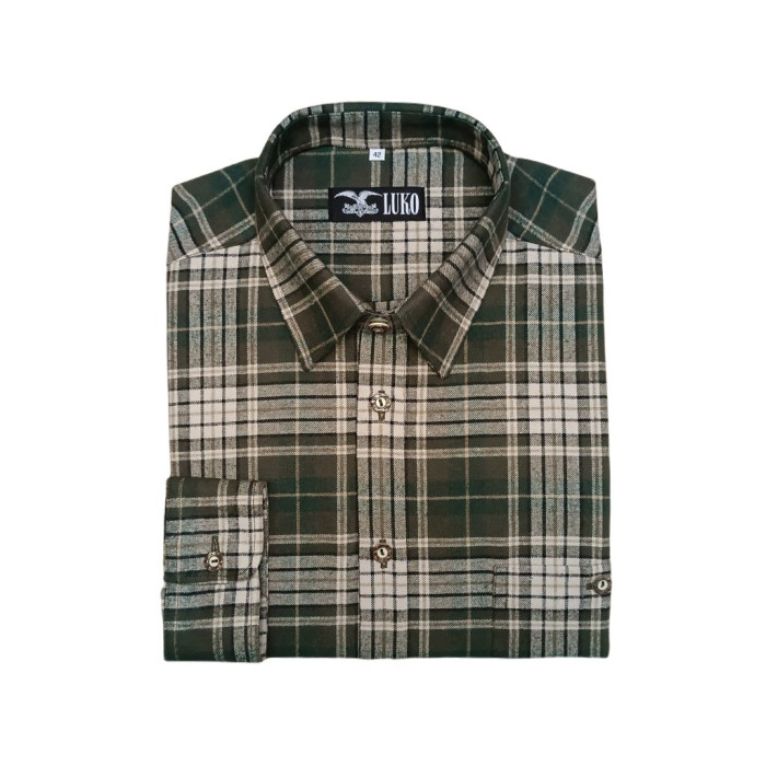 Elegance v barvách přírody Nadčasový kostkovaný vzor v harmonii tmavě zelené a béžové barvy působí klidně a stylově. Ať už si k ní vezmete džíny, manšestráky nebo pracovní kalhoty, vždy budete vypadat skvěle.