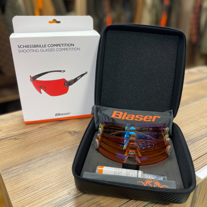Střelecké brýle Blaser Competition jsou dodávány se čtyřmi výměnnými plastovými skly, které lze díky systému rychlé výměny snadno střídat. Bezpečné a pohodlné nošení zaručují nastavitelné nosní opěrky. Brýle jsou dodávány společně s příslušenstvím v elegantním pevném pouzdře. Samozřejmě nechybí loga Blaser i Argali.