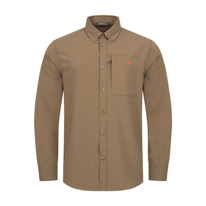 Technická košile pro namáhavé akce v teplém počasí je vyrobena z dvojitě tkané látky. Vnější strana je hladká, zatímco vnitřní stranu tvoří 3D mřížková struktura, která vytváří prostor mezi textilií a pokožkou. Materiál rychle absorbuje vlhkost a zajišťuje pocit sucha i při velké námaze. Košile má límeček na knoflíčky a krytou náprsní kapsu na zip.