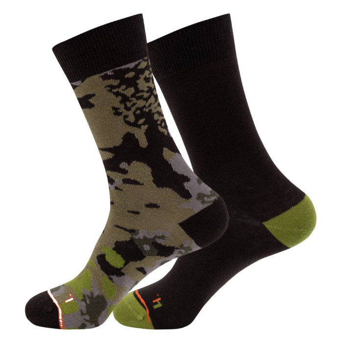 Ponožky pletené ze směsi bavlny, polyamidu a elastanu užijete při každé venkovní aktivitě. Nabízejí nejen prvotřídní komfort, ale jsou také odolné. Jeden pár je v barvách Blaser kamufláže, druhý pár je černý se zelenou patou a špičkou. Na obou párech samozřejmě nechybí logo Argali. Můžete objednat velikost 39-42 nebo 43-46.
